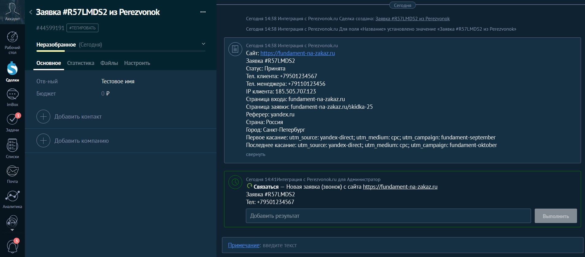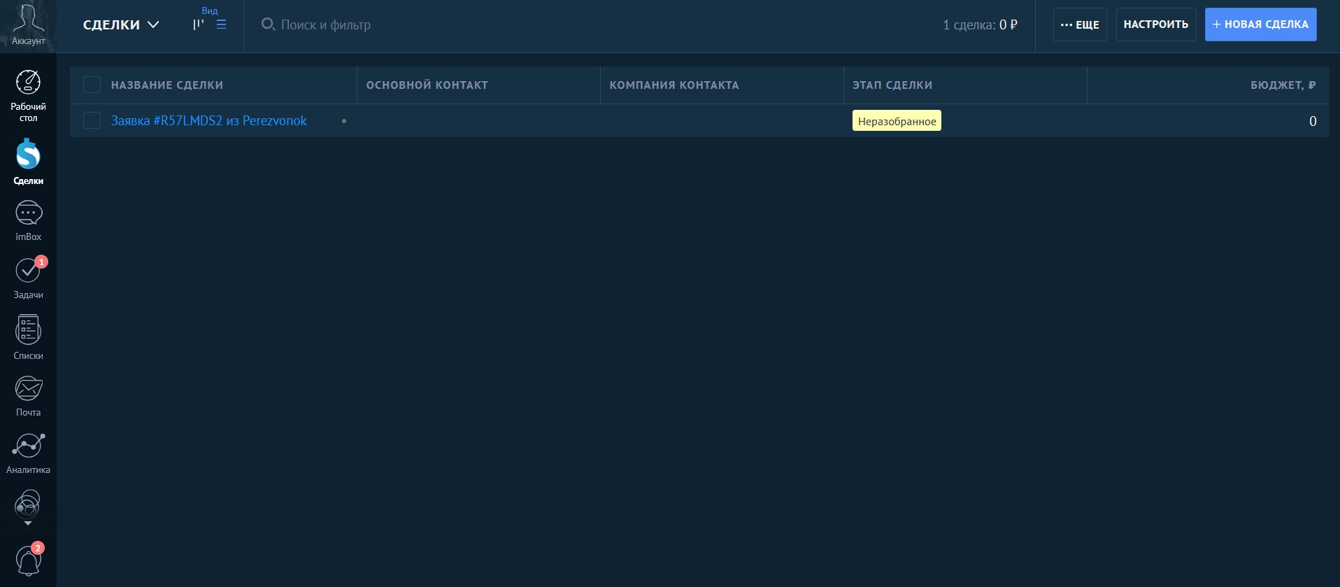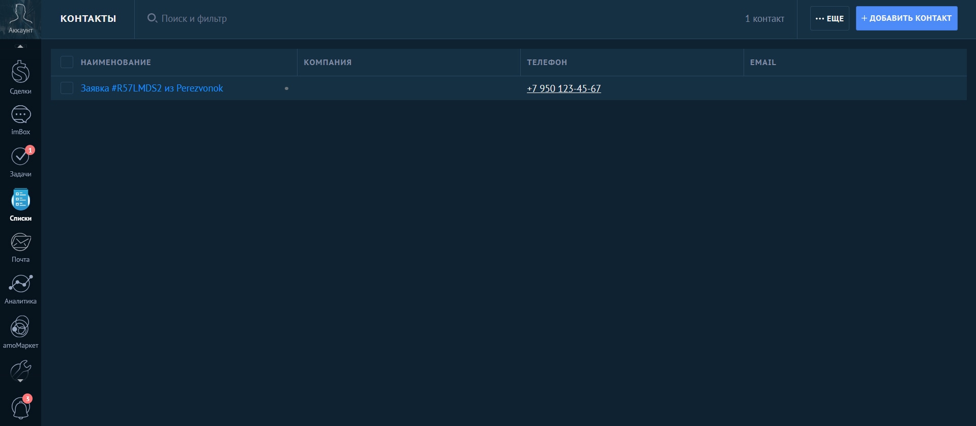 Как будут выглядеть заявки в интерфейсе amoCRM: