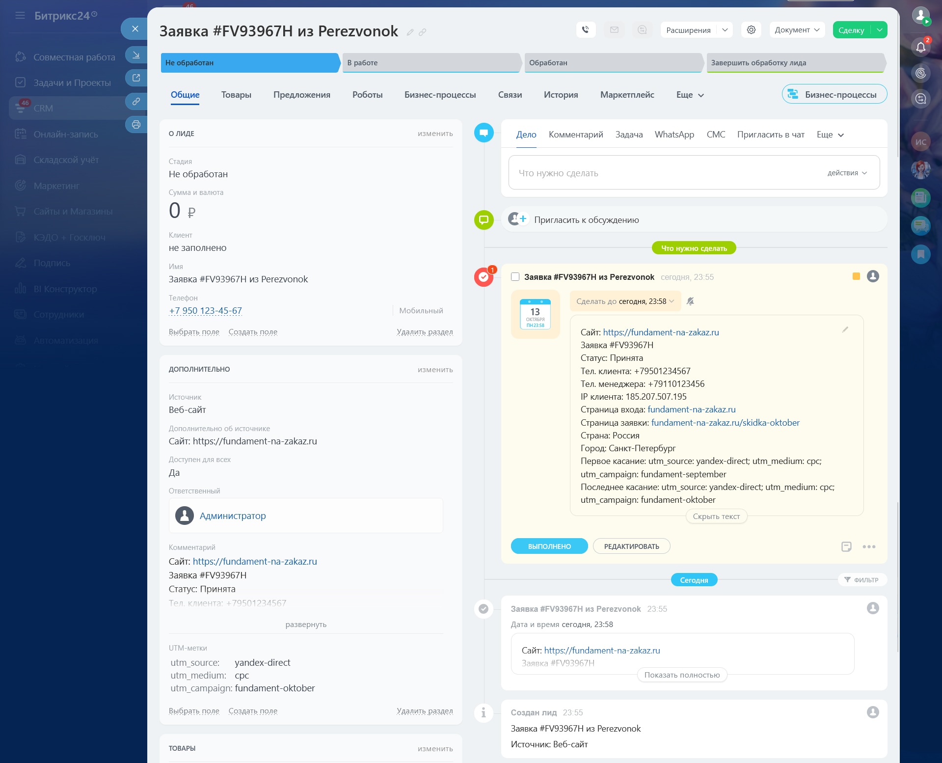 В каждом лиде и задаче будет указана подробная информация об источнике клиента, такая как: