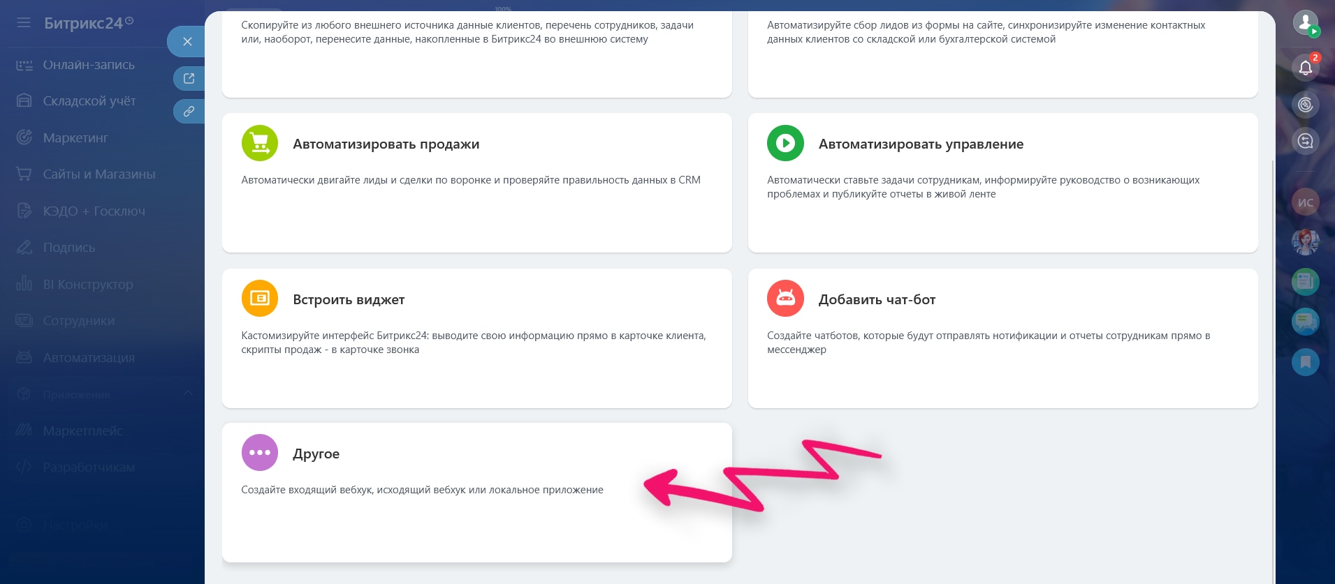 1.2. В открывшемся окне, во вкладке «Готовые сценарии» выберите «Другое» в самом низу.